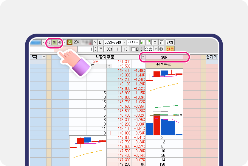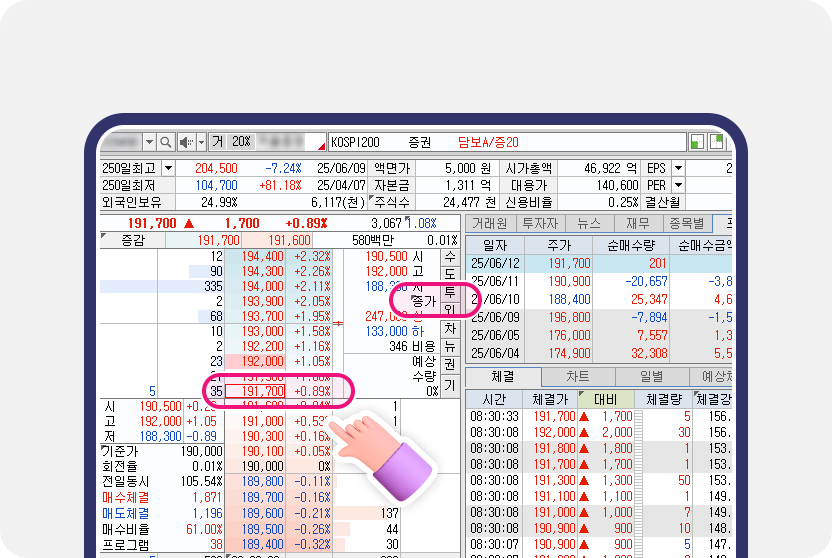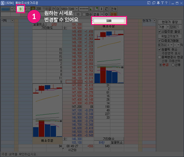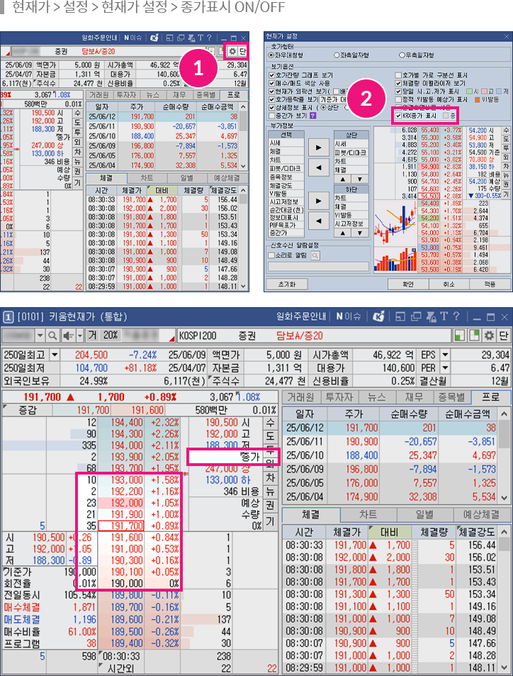 시세역전 시, 동일가격 주문의 경우 중복표시가 돼요.