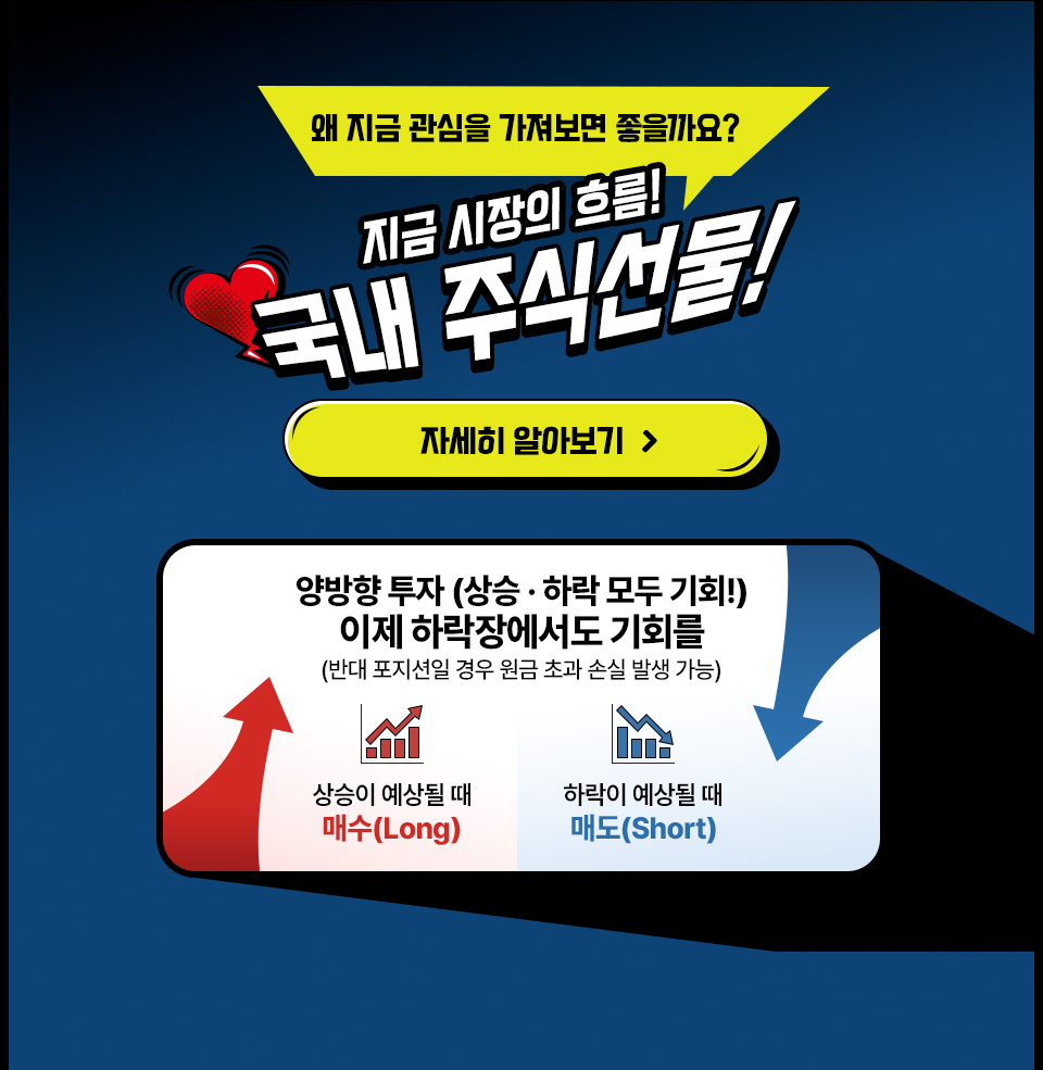 금융투자상품(선물옵션 거래)은 자산가격 변동 등에 따라 투자원금의 초과손실이 발생할 수 있으며, 그 손실은 투자자에게 귀속됩니다.