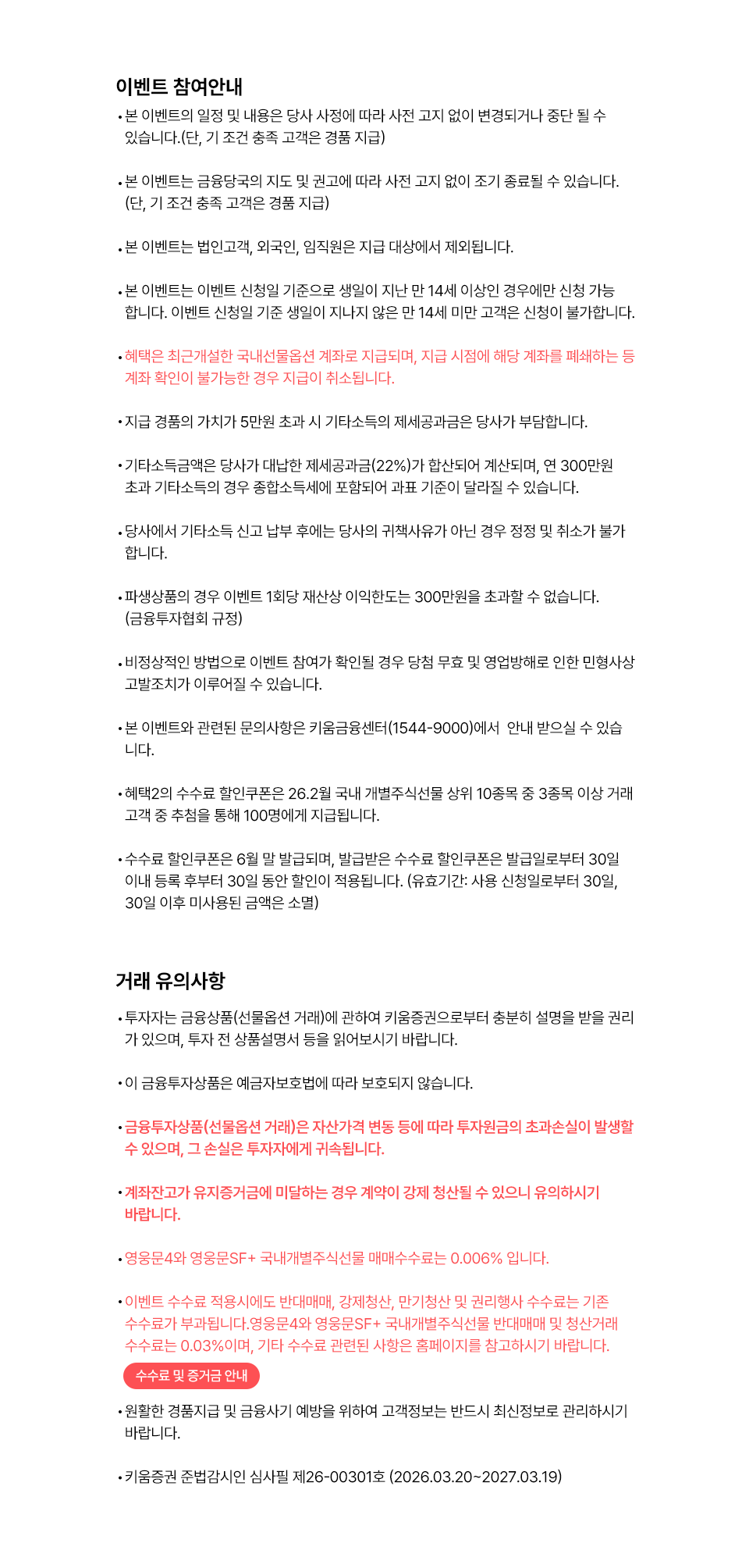 본 이벤트와 관련된 문의사항은 키움금융센터(1544-9000)에서 안내 받으실 수 있습니다.