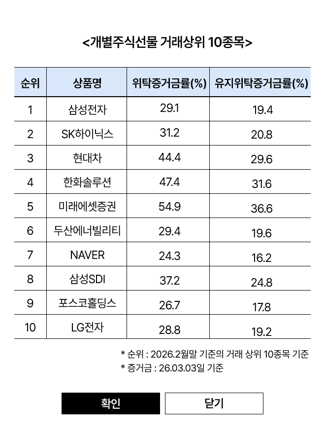 혜택2의 수수료 할인쿠폰은 26.2월 국내 개별주식선물 상위 10종목 중 3종목 이상