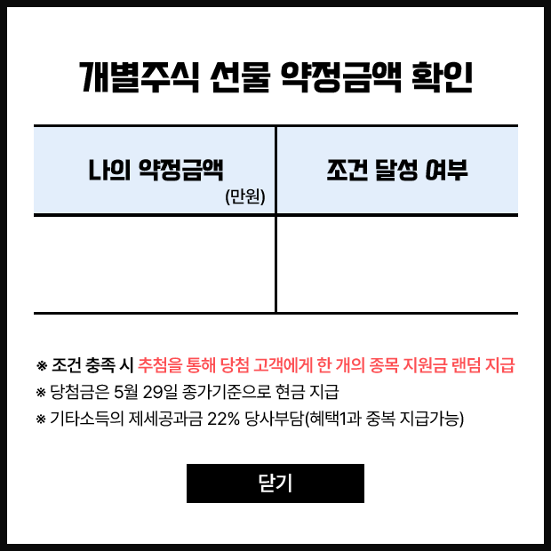 ※ 당첨금은 5월 29일 정규장 종가 기준으로 현금 지급